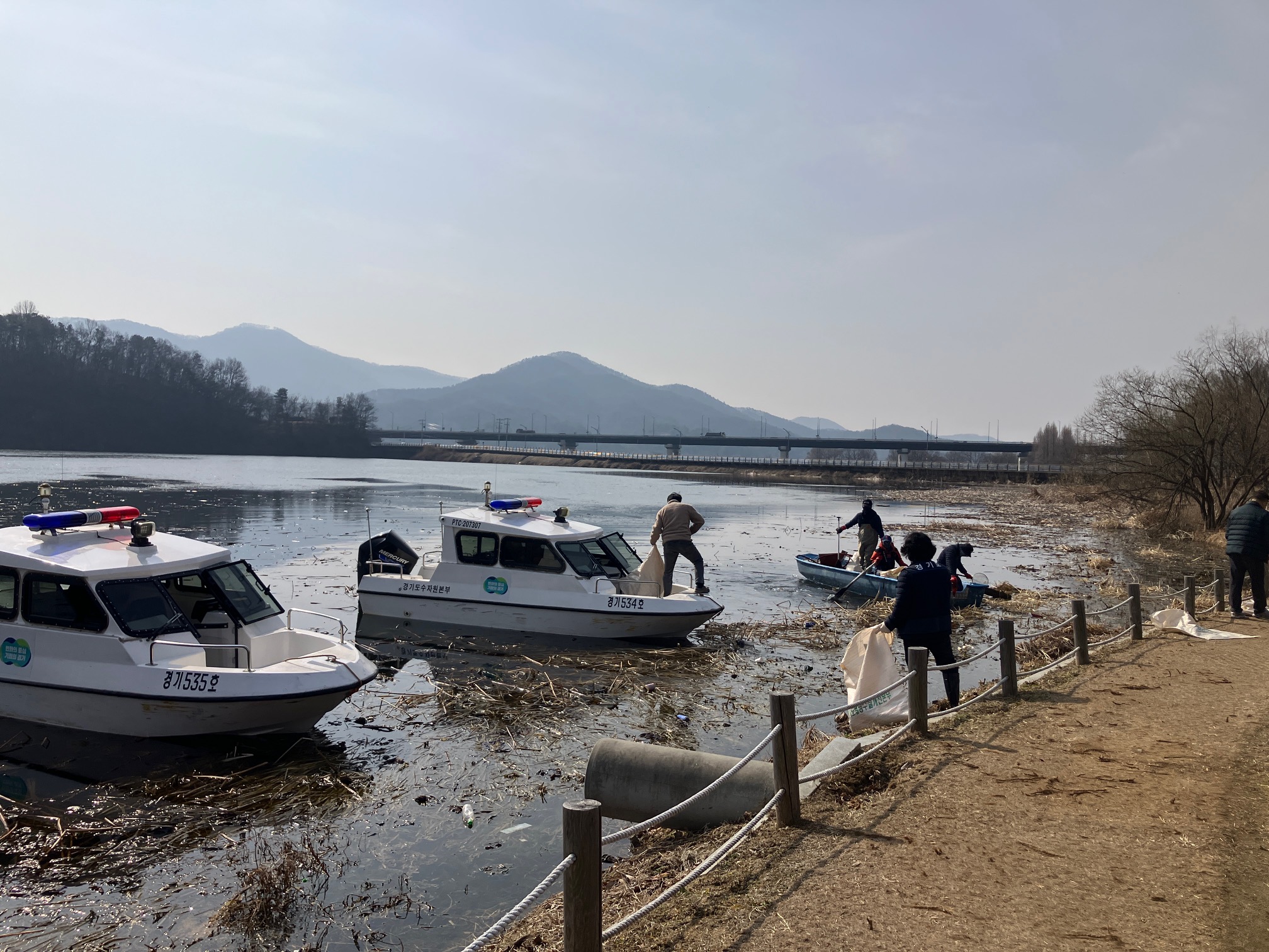 경기도수자원본부는 해빙기 봄철을 맞아 겨울 동안 쌓인 쓰레기를 집중 수거하기 위해 5일 팔당호 수변구역 일원에서 환경정화 활동을 실시했다.